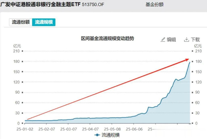 这并不是主观臆测。目前全市场唯一跟踪港股通非银指数的场内ETF,港股通非银ETF(513750),流通份额从今年初的7亿份,暴增到超过100亿份,增幅超过13倍。规模也从年初的不足8亿元,暴涨到现在的180亿元,增幅超过21倍。这就是增量资金源源不断买入的结果。(数据来源:wind,数据区间:2025.1.2-2025.8.19,下图同)