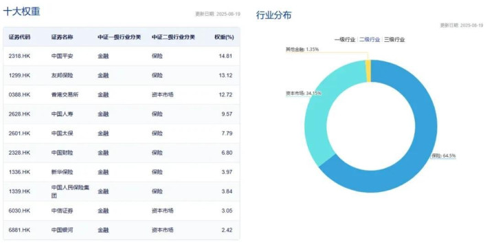 这个指数的保险股含量非常高。从中证指数公司官网可以查到,目前这个指数的前十大重仓股,有7只是保险股,保险股在整个指数的权重占比达到64.5%。这是我目前看到的,有ETF产品跟踪的、保险含量最高的指数了。这就是它的稀缺性所在。
