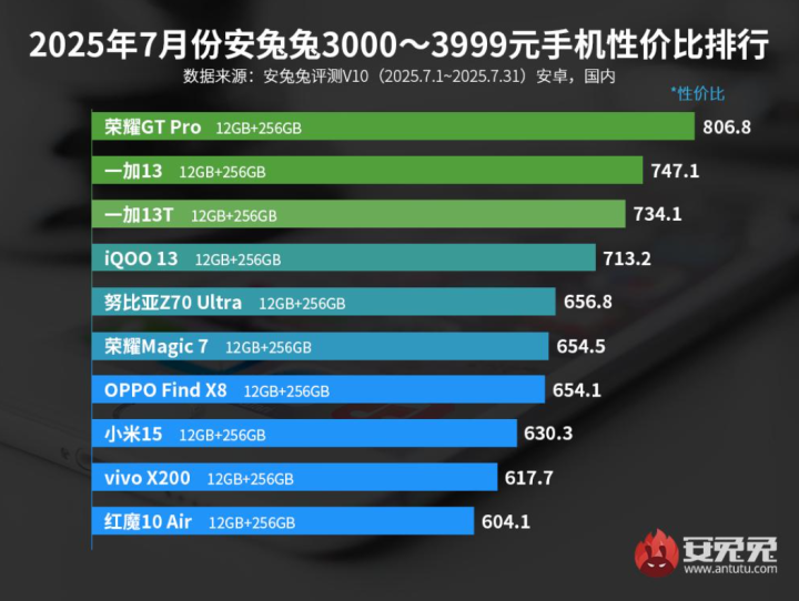 不仅现货供应不用抢购了,甚至像Pura80 Pro上市才一个月就出现了800元的降价。所以说卖断货这种情况变得越来越少了,更别说开卖一段时间后,又频繁反复经常“卖断货”这种情况,更是少之又少了。但却有一款手机例外,它就是荣耀今年推出了超高性价比的荣耀GT Pro。凭借超高的性价比,堆料满满的硬件配置,成功拿下安兔兔3000-3999元性价比排行榜第一名。打败自家大哥荣耀magic7、一加13、iQOO 13等热门高性价比机型。
